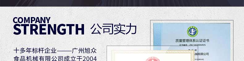 廣州旭眾食品機(jī)械有限公司是一家集科研開(kāi)發(fā),生產(chǎn)設(shè)計(jì),營(yíng)銷服務(wù)為一體的現(xiàn)代化生產(chǎn)企業(yè)。現(xiàn)代化生產(chǎn)車間,精湛制造技術(shù),所產(chǎn)機(jī)械歷經(jīng)市場(chǎng)重重考驗(yàn),不斷贏得海內(nèi)外客戶的贊譽(yù)。
