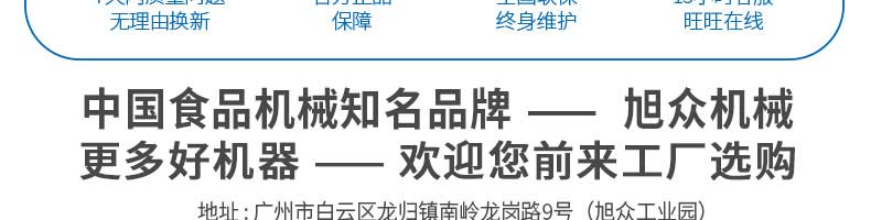 廣州旭眾食品機(jī)械有限公司是一家集科研開(kāi)發(fā),生產(chǎn)設(shè)計(jì),營(yíng)銷服務(wù)為一體的現(xiàn)代化生產(chǎn)企業(yè)?,F(xiàn)代化生產(chǎn)車間,精湛制造技術(shù),所產(chǎn)機(jī)械歷經(jīng)市場(chǎng)重重考驗(yàn),不斷贏得海內(nèi)外客戶的贊譽(yù)。