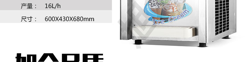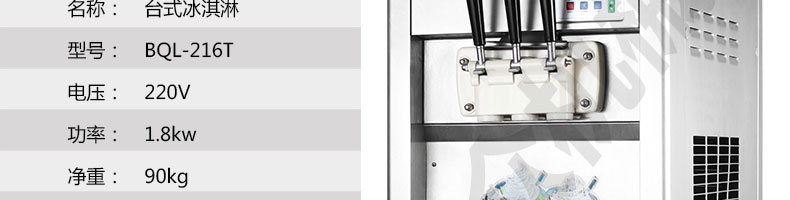 BQL-216T臺(tái)式冰淇淋機(jī),●選用國際名牌成熟制冷配套件和高效壓縮機(jī),融合旭眾精湛工藝輔以嚴(yán)格的質(zhì)量控制流程,使產(chǎn)品整體性能及品質(zhì)得以全面提升。●采用全數(shù)字電腦控制系統(tǒng),選用名牌優(yōu)質(zhì)電器元件,先進(jìn)的生產(chǎn)工藝,故障診斷,軟硬任意調(diào)制,自動(dòng)修復(fù)功能,安全精確,可靠性更高?!駥I(yè)成熟制冷系統(tǒng)設(shè)計(jì),選用世界名牌大功率專用壓縮機(jī),大大縮短冰淇淋成型時(shí)間,相同時(shí)間內(nèi)冰淇淋產(chǎn)量大幅度增加,使您生意火爆時(shí)依然得心應(yīng)手,為您創(chuàng)造財(cái)富?!癜踩椒€(wěn)的機(jī)械攪拌系統(tǒng),噪音更低、振動(dòng)更小,使整機(jī)運(yùn)行性能達(dá)到國際先進(jìn)水平?!翊_保進(jìn)料溫度在0°C~35°C;環(huán)境溫度5°C~40°C勻可正常使用。