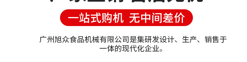 廣州旭眾食品機(jī)械有限公司是一家集科研開發(fā),生產(chǎn)設(shè)計,營銷服務(wù)為一體的現(xiàn)代化生產(chǎn)企業(yè)?,F(xiàn)代化生產(chǎn)車間,精湛制造技術(shù),所產(chǎn)機(jī)械歷經(jīng)市場重重考驗(yàn),不斷贏得海內(nèi)外客戶的贊譽(yù)。