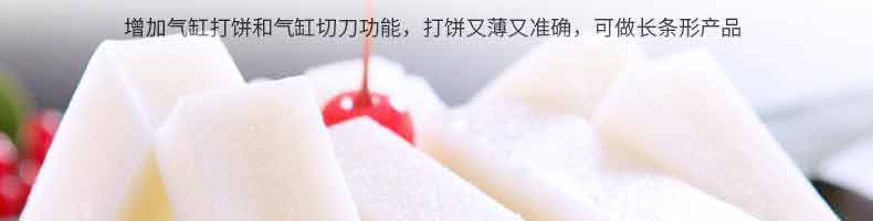 6000A無餡糍粑機,智能調(diào)控囿板,智能內(nèi)芯控制,可自由調(diào)節(jié)輸送,切刀和打餅的時間。調(diào)節(jié)自如拍扁成型,增加氣缸打餅和氣缸切刀功能,打餅又薄又準(zhǔn)確,可做長條形產(chǎn)品