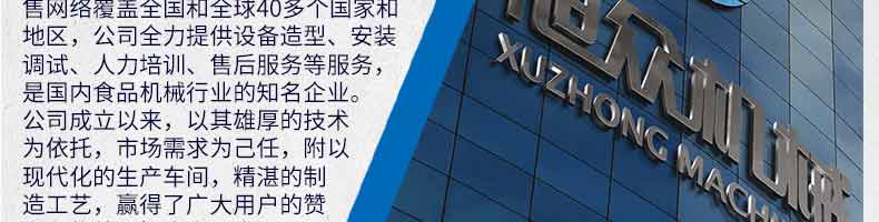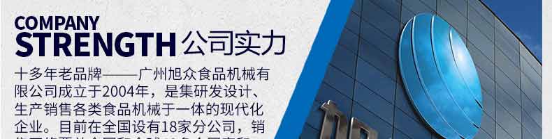 廣州旭眾食品機械有限公司是一家集科研開發(fā),生產(chǎn)設(shè)計,營銷服務(wù)為一體的現(xiàn)代化生產(chǎn)企業(yè)。現(xiàn)代化生產(chǎn)車間,精湛制造技術(shù),所產(chǎn)機械歷經(jīng)市場重重考驗,不斷贏得海內(nèi)外客戶的贊譽。