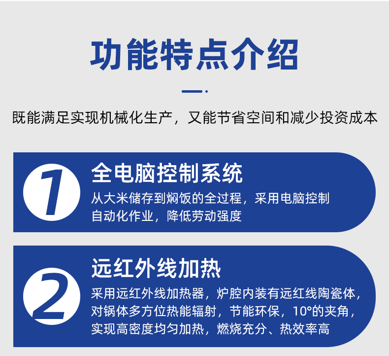 機(jī)械手全自動米飯生產(chǎn)線,實力大咖 商用好幫手,提供培訓(xùn)、指導(dǎo)和工藝傳授,品牌服務(wù)有保障。遠(yuǎn)紅外加熱、智能控制、立體燜飯、不粘鍋、熱效率高、不銹鋼結(jié)構(gòu)、雙層保溫、節(jié)能環(huán)保。