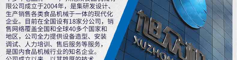 廣州旭眾食品機(jī)械有限公司是一家集科研開發(fā),生產(chǎn)設(shè)計,營銷服務(wù)為一體的現(xiàn)代化生產(chǎn)企業(yè)。現(xiàn)代化生產(chǎn)車間,精湛制造技術(shù),所產(chǎn)機(jī)械歷經(jīng)市場重重考驗,不斷贏得海內(nèi)外客戶的贊譽。
