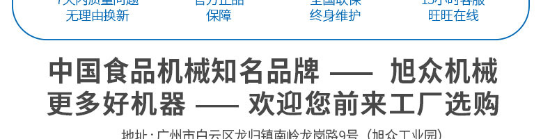 廣州旭眾食品機(jī)械有限公司是一家集科研開發(fā),生產(chǎn)設(shè)計(jì),營銷服務(wù)為一體的現(xiàn)代化生產(chǎn)企業(yè)?,F(xiàn)代化生產(chǎn)車間,精湛制造技術(shù),所產(chǎn)機(jī)械歷經(jīng)市場重重考驗(yàn),不斷贏得海內(nèi)外客戶的贊譽(yù)。