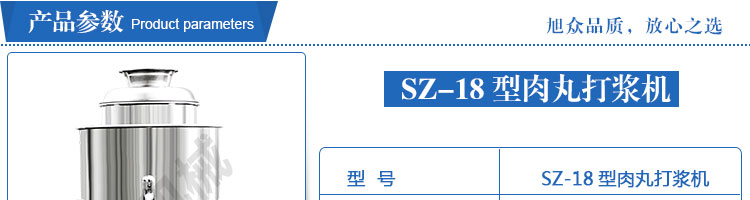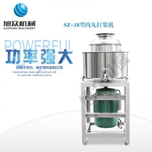 SZ-18型肉丸打漿機(jī),本機(jī)裝肉用桶子采用不銹鋼制造,達(dá)到衛(wèi)生要求,肉桶外罩和桶底裝有冷卻裝置,確保肉漿新鮮。比手工的打漿更精細(xì),所產(chǎn)肉丸、魚丸彈性好,色澤潔白。
