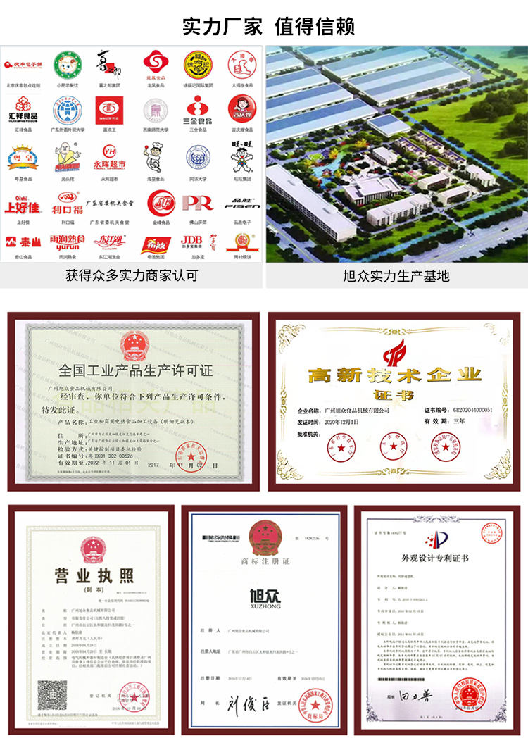 廣州旭眾食品機(jī)械有限公司是一家集科研開發(fā),生產(chǎn)設(shè)計(jì),營(yíng)銷服務(wù)為一體的現(xiàn)代化生產(chǎn)企業(yè)。現(xiàn)代化生產(chǎn)車間,精湛制造技術(shù),所產(chǎn)機(jī)械歷經(jīng)市場(chǎng)重重考驗(yàn),不斷贏得海內(nèi)外客戶的贊譽(yù)。