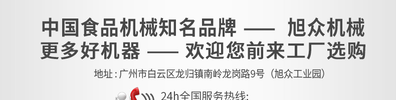 廣州旭眾食品機(jī)械有限公司是一家集科研開(kāi)發(fā),生產(chǎn)設(shè)計(jì),營(yíng)銷(xiāo)服務(wù)為一體的現(xiàn)代化生產(chǎn)企業(yè)?,F(xiàn)代化生產(chǎn)車(chē)間,精湛制造技術(shù),所產(chǎn)機(jī)械歷經(jīng)市場(chǎng)重重考驗(yàn),不斷贏得海內(nèi)外客戶的贊譽(yù)。