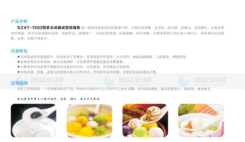 XZ4T -1502多頭湯圓成型排盤機,湯圓機,本機只要將面團放入進料口,開機便可自動搓圓、成型的設備,一次性成型四次產(chǎn)品,制品不易變形,工作效率高