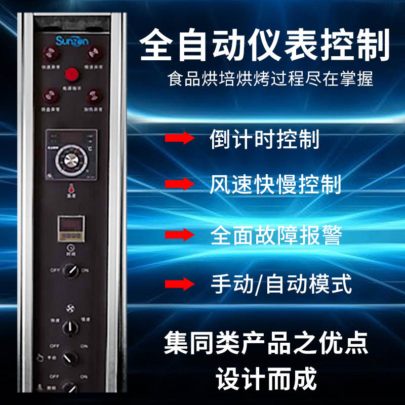 XZ-32-32層旋轉(zhuǎn)烤爐,360°熱風(fēng)環(huán)流系統(tǒng)立體熱風(fēng)循環(huán),加熱更高效,食品成色更誘人。全自動(dòng)儀表控制,食品烘培烘烤過(guò)程盡在掌握。倒計(jì)時(shí)控制、風(fēng)速快慢控制、全面障報(bào)警。