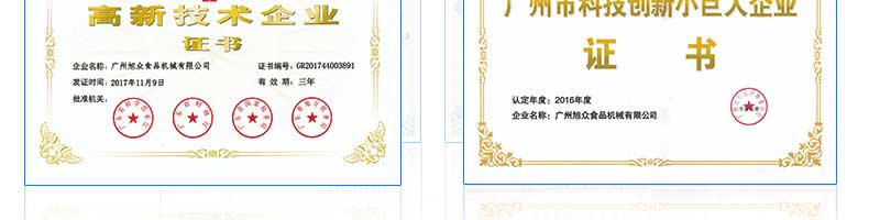 廣州旭眾食品機械有限公司是一家集科研開發(fā),生產(chǎn)設(shè)計,營銷服務(wù)為一體的現(xiàn)代化生產(chǎn)企業(yè)?,F(xiàn)代化生產(chǎn)車間,精湛制造技術(shù),所產(chǎn)機械歷經(jīng)市場重重考驗,不斷贏得海內(nèi)外客戶的贊譽。