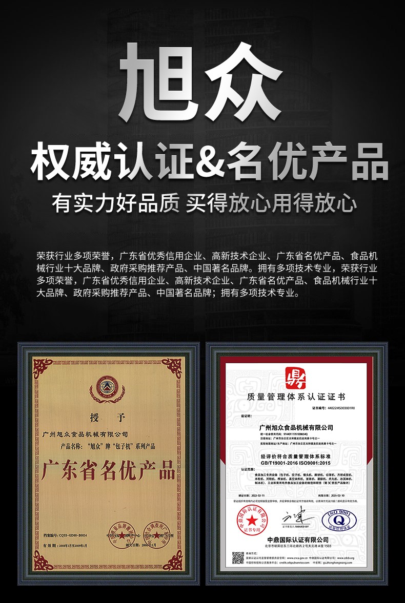 廣州旭眾食品機(jī)械有限公司是一家集科研開發(fā),生產(chǎn)設(shè)計,營銷服務(wù)為一體的現(xiàn)代化生產(chǎn)企業(yè)。現(xiàn)代化生產(chǎn)車間,精湛制造技術(shù),所產(chǎn)機(jī)械歷經(jīng)市場重重考驗,不斷贏得海內(nèi)外客戶的贊譽。