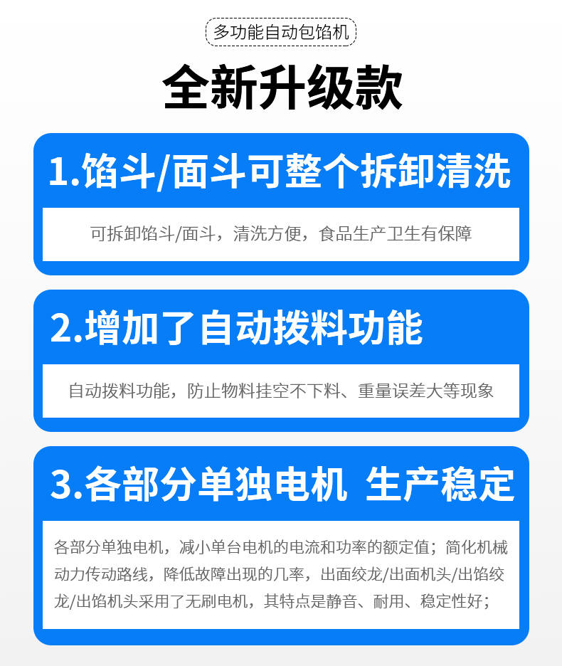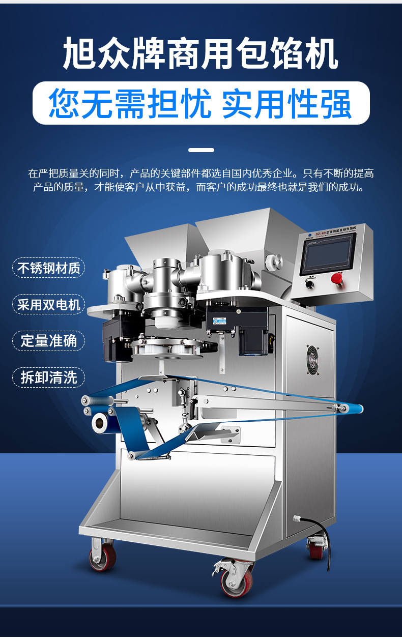SZ-69型多功能自動包餡機,餡斗/面斗,可整個拆卸清洗,增加了自動拔料功能。月餅鳳梨酥紅桃裸湯圓南瓜餅軟餡餅。在嚴把質(zhì)量關(guān)的同時,產(chǎn)品的關(guān)鍵部件都選自國內(nèi)優(yōu)秀企業(yè)。只有不斷的提高產(chǎn)品的質(zhì)量,才能使客戶從中獲益,而客戶的成功最終也就是我們的成功。