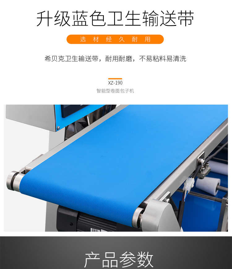 XZ-190智能型卷面式包子機(jī),科技和工藝出乎想象不傷面筋,不斷面筋,薄厚調(diào)節(jié)自如可直接調(diào)節(jié)面皮的薄厚,所出產(chǎn)品外形大小統(tǒng)一,遠(yuǎn)比手工制作美觀!