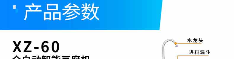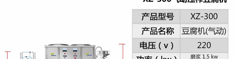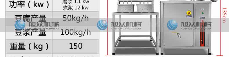 名稱XZ-60智能豆腐機(jī) 電源220V 功率1.1kw 產(chǎn)量豆?jié){產(chǎn)量120斤/h;豆腐產(chǎn)量60斤/h 尺寸600/1300*1200mm 重量 規(guī)格 其他