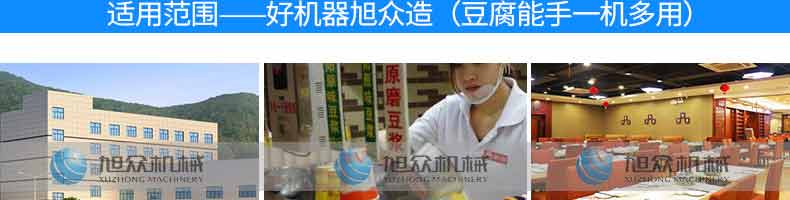 XZ-60智能豆腐機(jī),一機(jī)多用:可生產(chǎn)豆腐系列產(chǎn)品:?jiǎn)紊?,老)豆腐、多彩?腐、單色豆腐皮、多色豆腐皮、彩色豆腐干、豆?jié){、豆花等豆制品制作,還可以與其他設(shè)備和工藝配套生 產(chǎn)更多的豆制品。