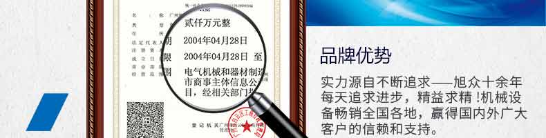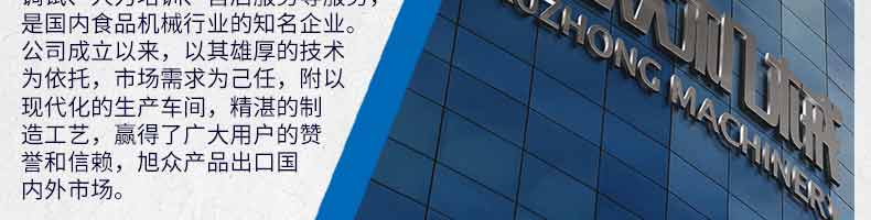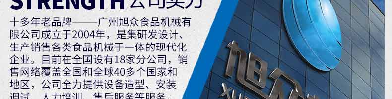 廣州旭眾食品機(jī)械有限公司是一家集科研開發(fā),生產(chǎn)設(shè)計(jì),營銷服務(wù)為一體的現(xiàn)代化生產(chǎn)企業(yè)?,F(xiàn)代化生產(chǎn)車間,精湛制造技術(shù),所產(chǎn)機(jī)械歷經(jīng)市場重重考驗(yàn),不斷贏得海內(nèi)外客戶的贊譽(yù)。