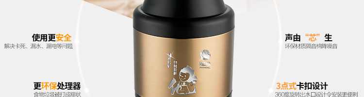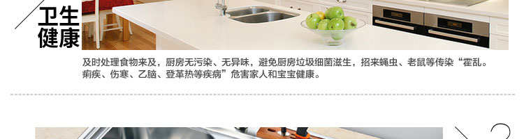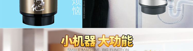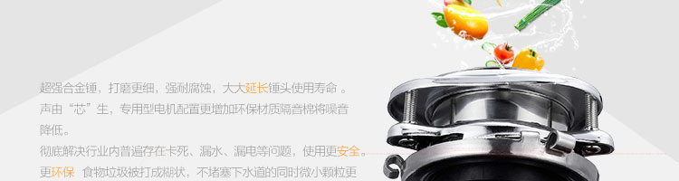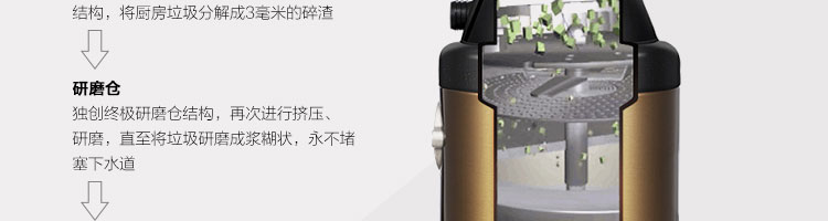 ACLQ56-廚房垃圾處理器,該機(jī)器是靠?jī)?nèi)部結(jié)構(gòu)、零件組合達(dá)到處理垃圾的效果,通過(guò)碾、壓、擠、磨等系統(tǒng)的處理,在十幾秒內(nèi)安全將食物垃圾處理成小于3毫米的顆粒,隨著水流排入下水道,使用十分安全。