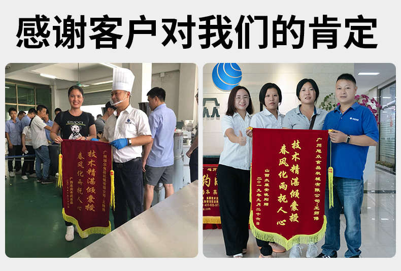 廣州旭眾食品機械有限公司是一家集科研開發(fā),生產(chǎn)設(shè)計,營銷服務(wù)為一體的現(xiàn)代化生產(chǎn)企業(yè)?,F(xiàn)代化生產(chǎn)車間,精湛制造技術(shù),所產(chǎn)機械歷經(jīng)市場重重考驗,不斷贏得海內(nèi)外客戶的贊譽。