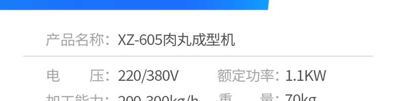 名稱605肉丸成型機主圖 電源220/380v 功率1.1kw 產(chǎn)量200-300kg/h 尺寸680*380*1220mm 重量70kg 規(guī)格 其他