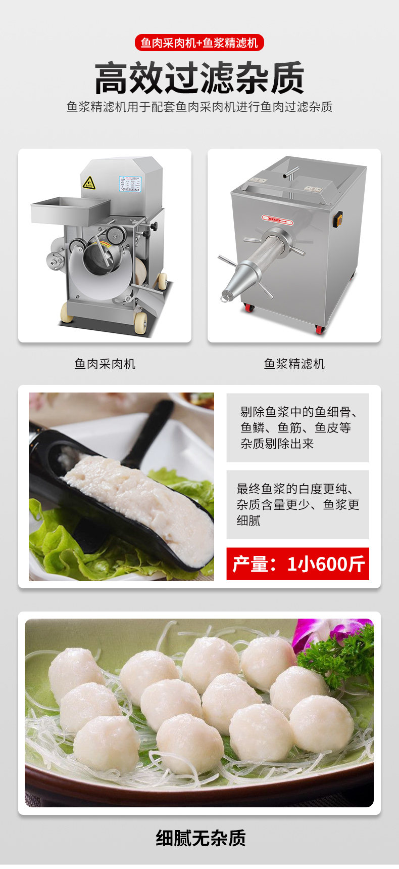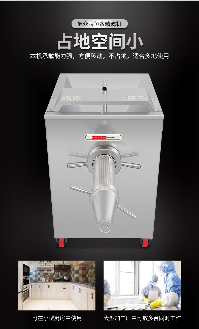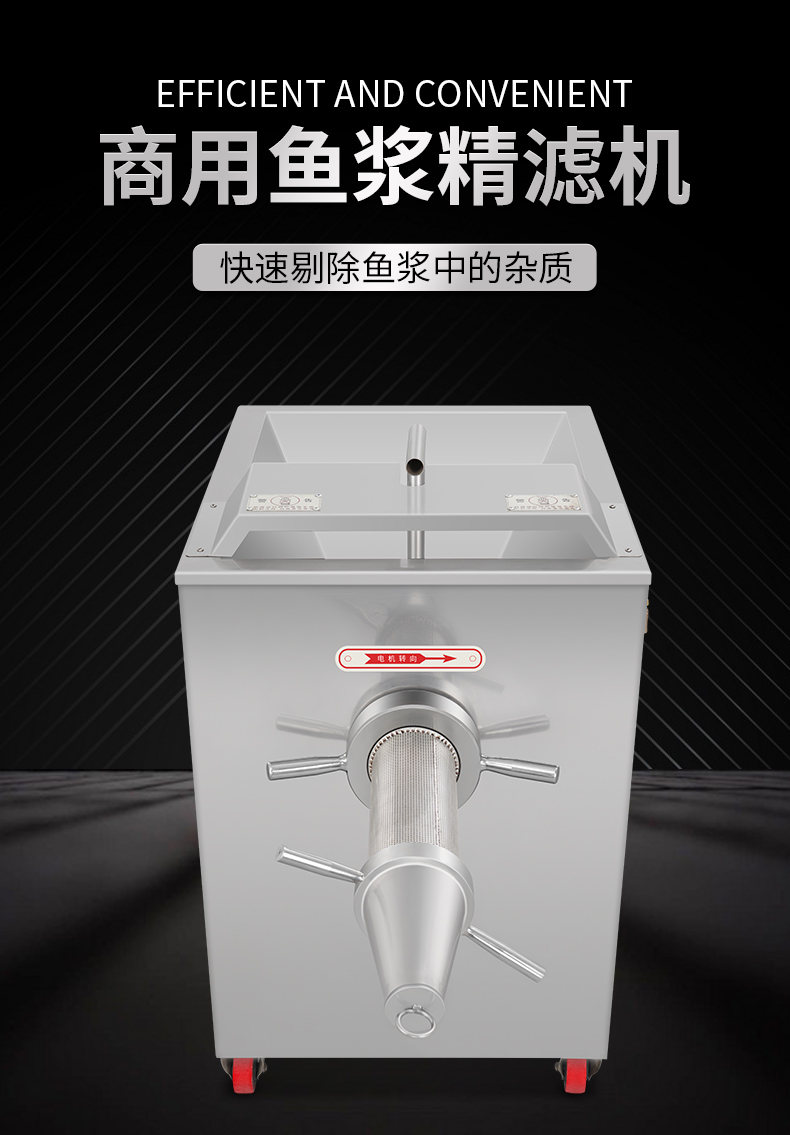 SZJ-300魚漿精濾機,商用創(chuàng)業(yè)魚漿精濾機,用于配套魚肉采肉機進行魚肉過濾雜質。節(jié)省人工開支,人工加工魚漿,效率慢剔除魚細骨,不干凈,有了魚漿精濾機,一人就可以很快制作多種魚漿。